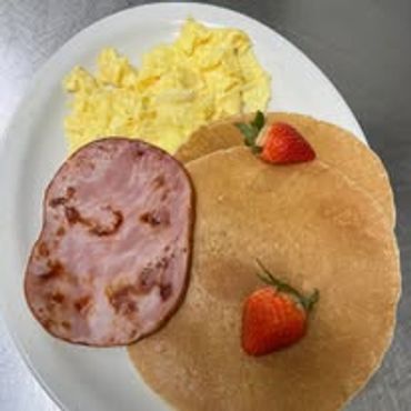 Choice of 2 bacon, 2 sausage links, sliced ham or 2 Sausage Patties